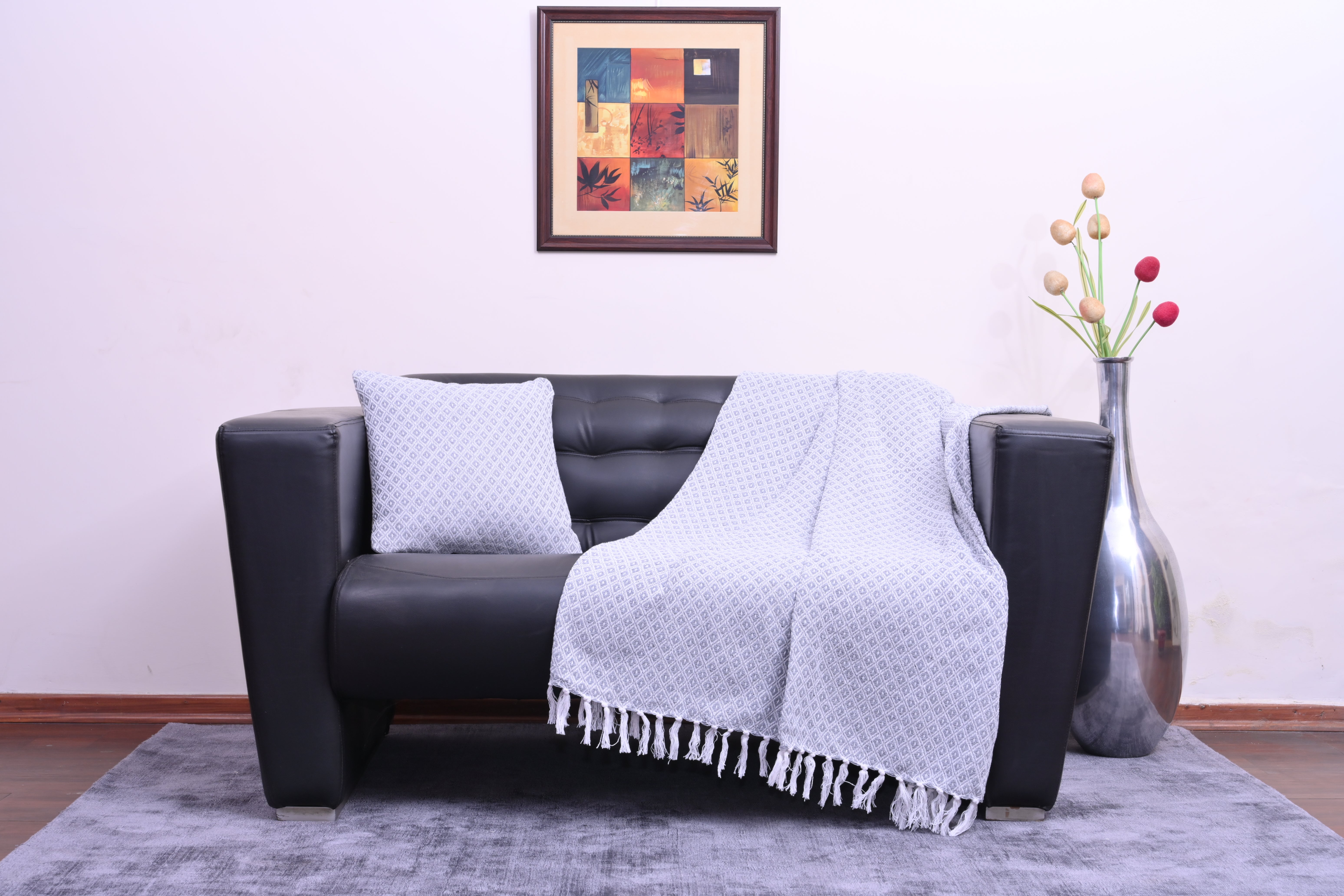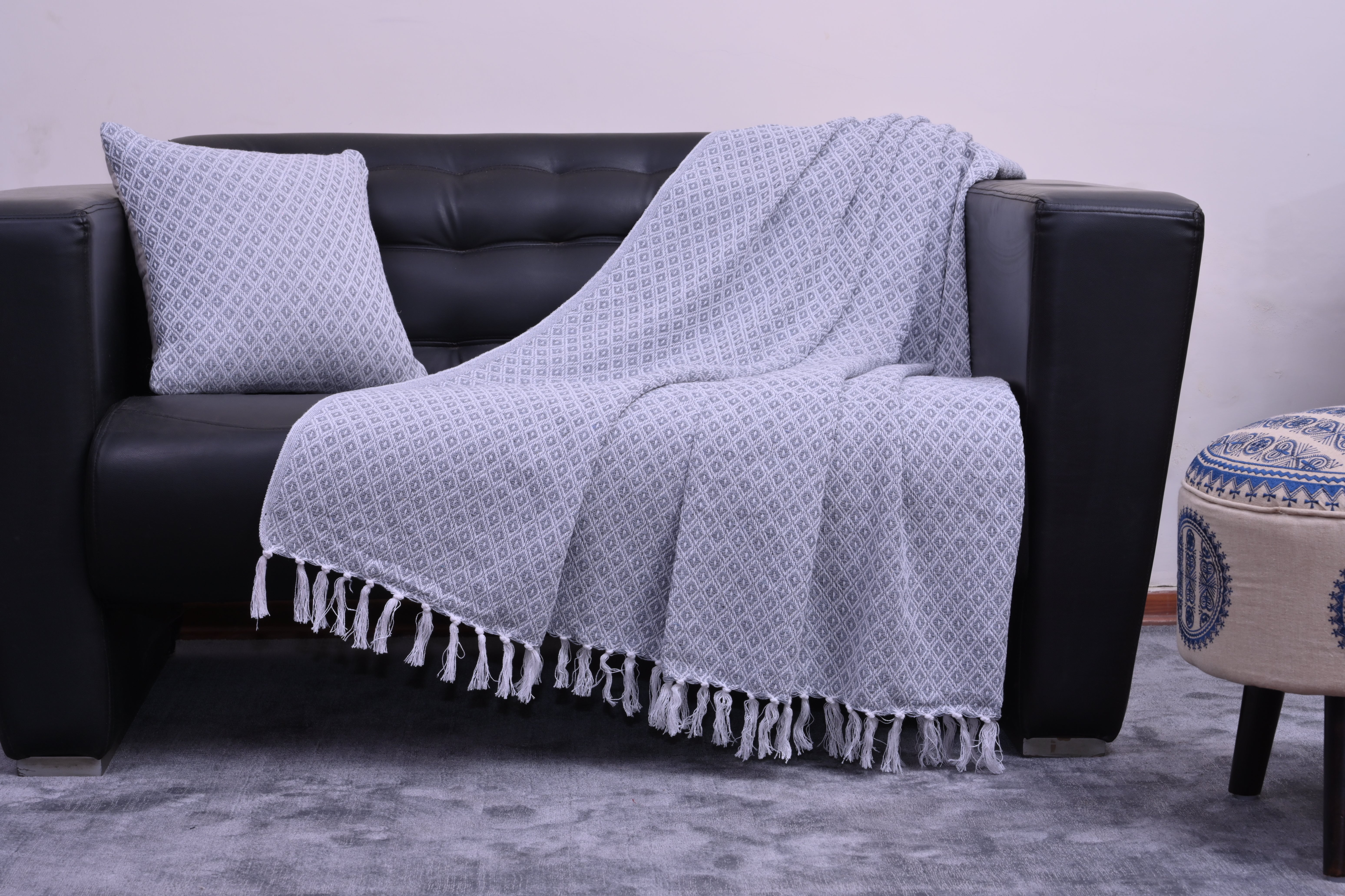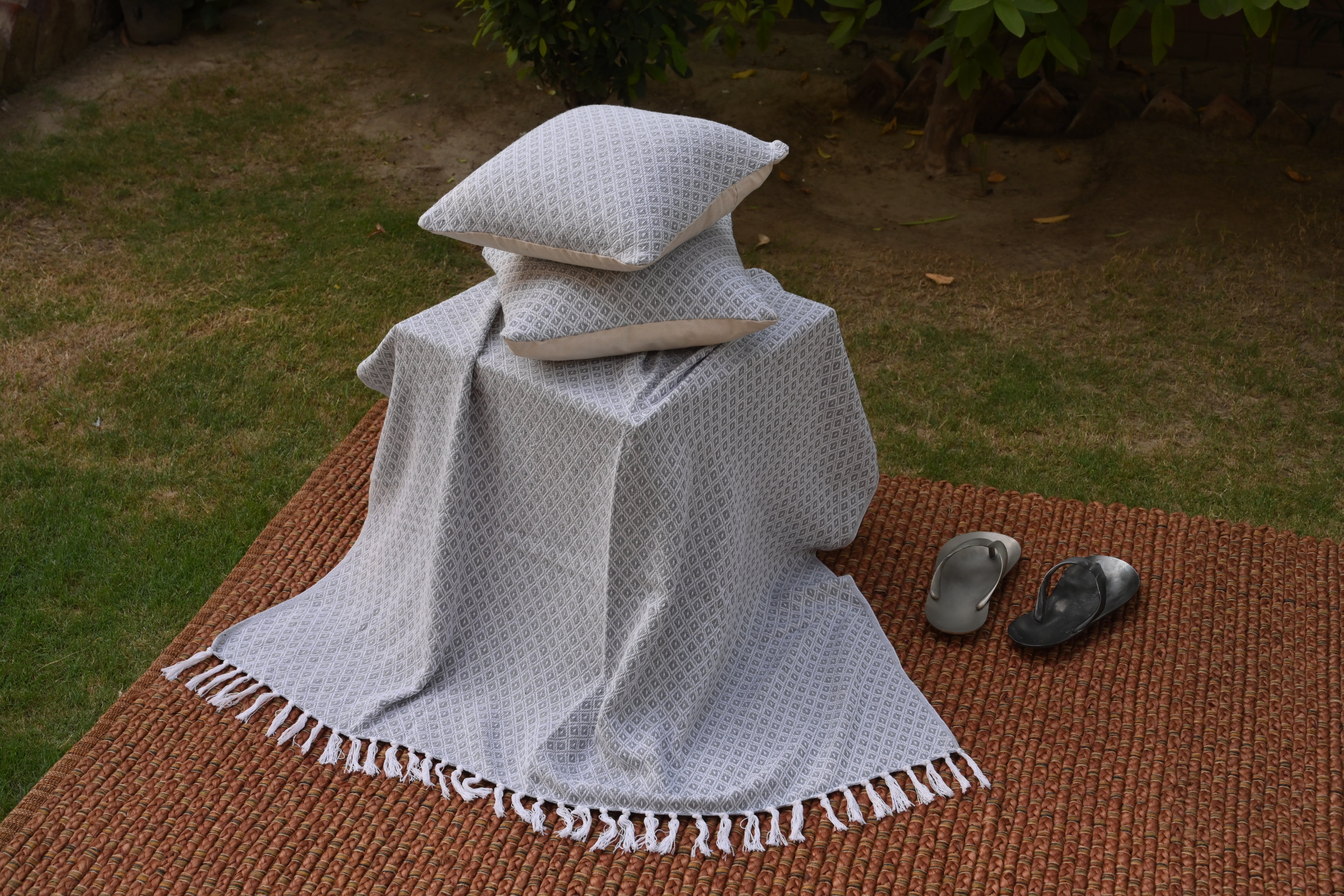 Set de Manta y 2 Cojines de Algodón Tejida a Mano
