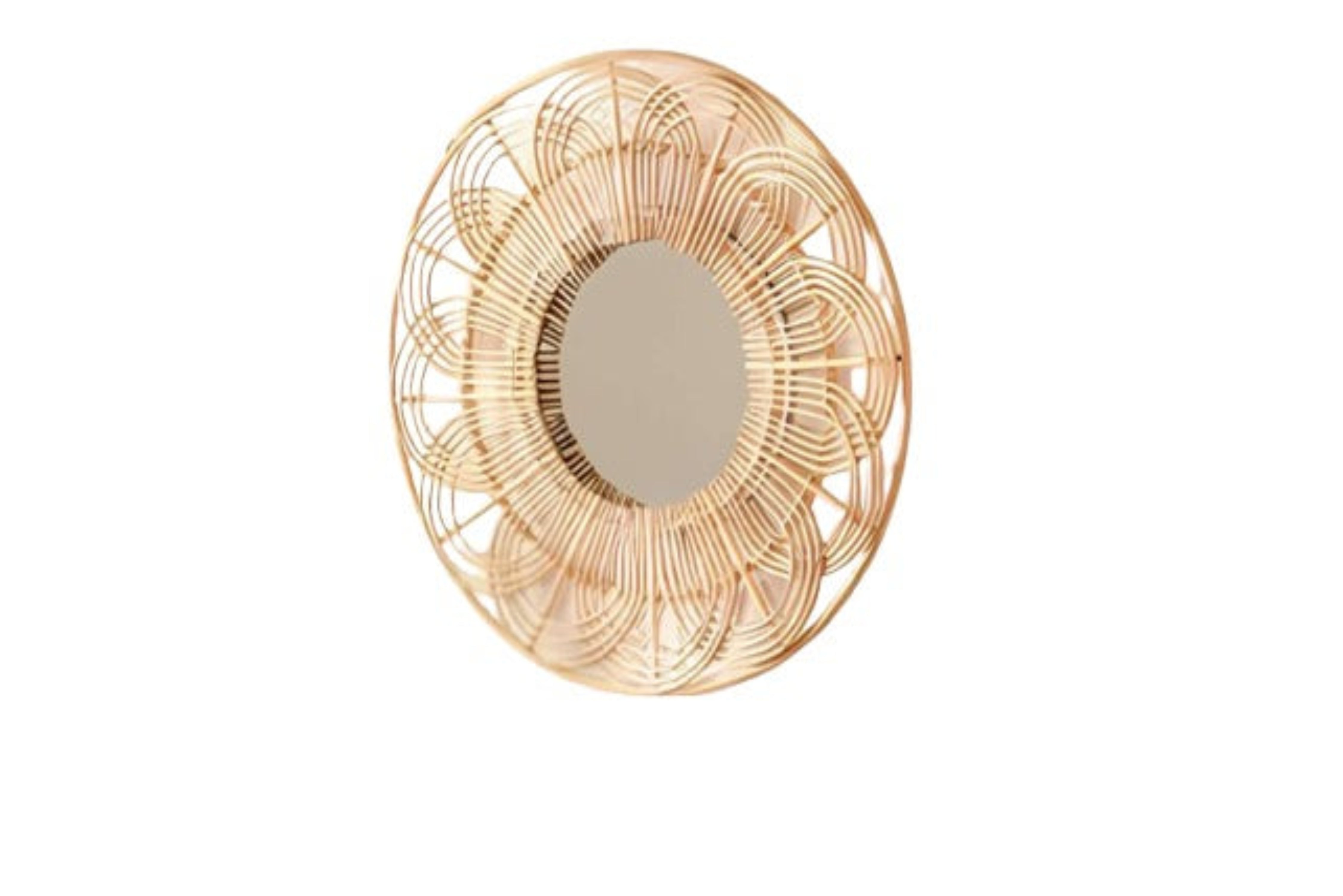 Elegante y artístico, el espejo de pared de ratán Petal Loop aporta un encanto delicado y natural a tus interiores. Su intrincado diseño en bucle evoca una flor en flor, elaborado con ratán curvado a mano alrededor de un espejo central de cristal.